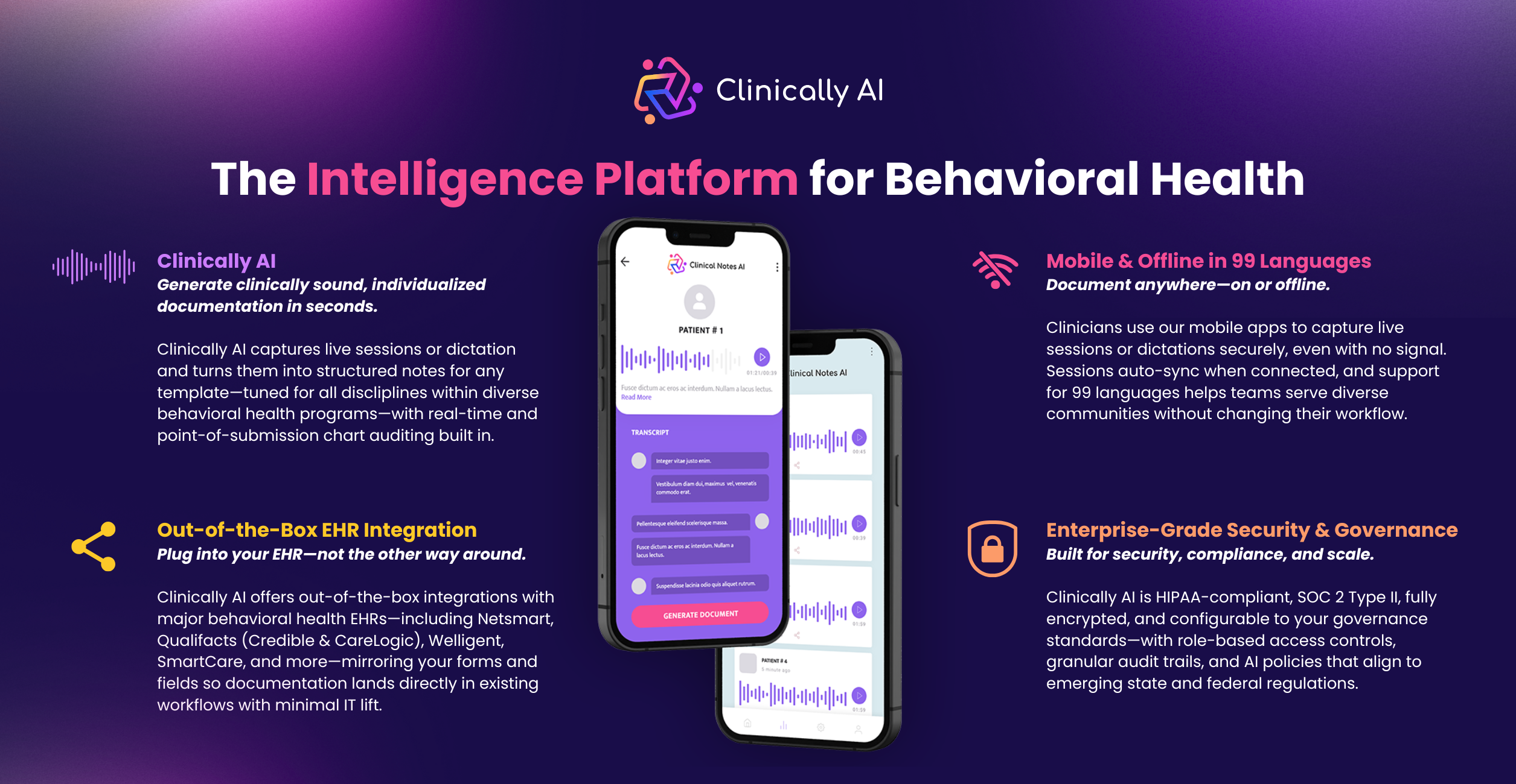 Built for Organizational IntelligenceClinically AI goes beyond note automation. It gives leaders visibility and control without adding administrative burden.